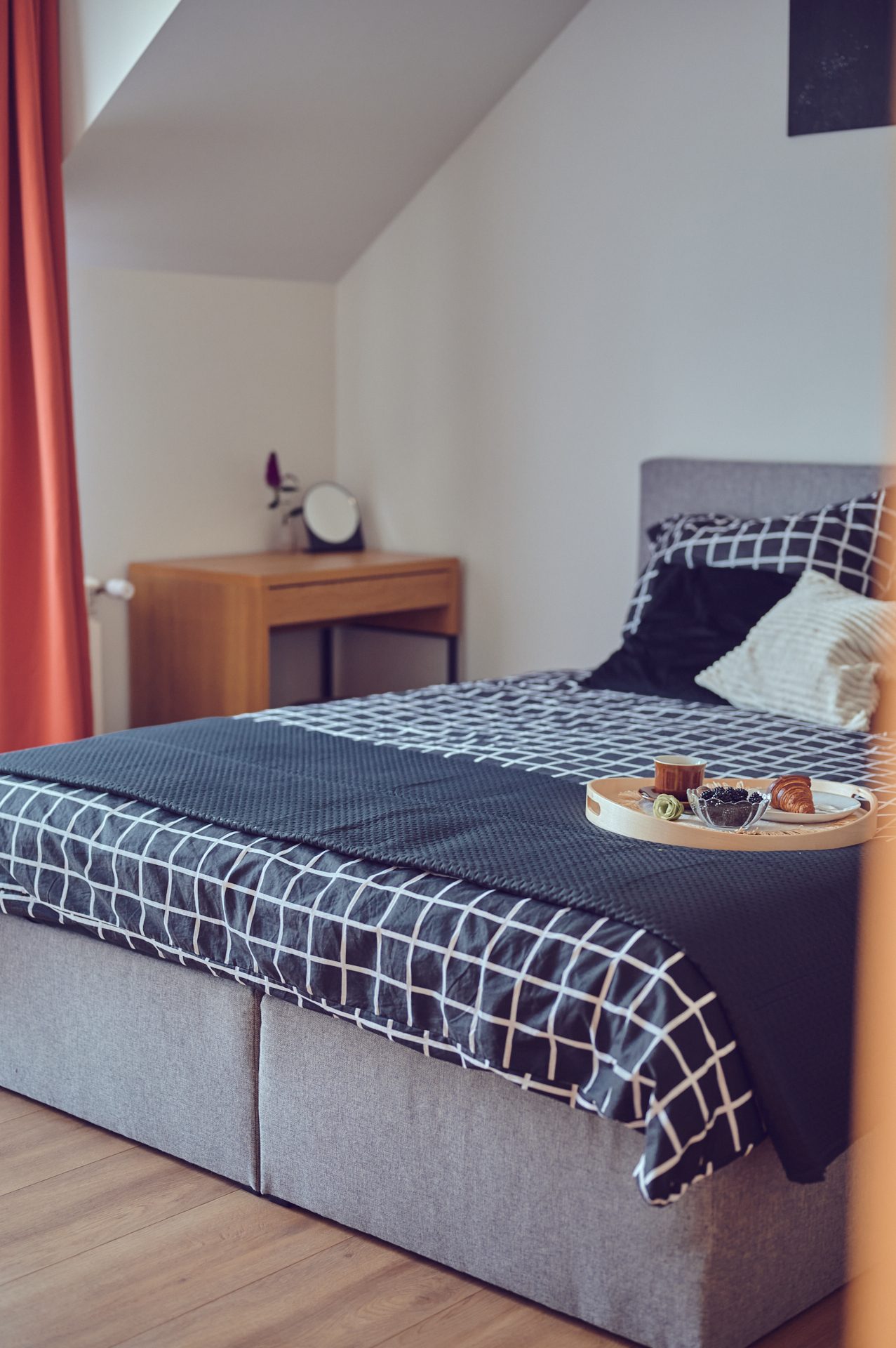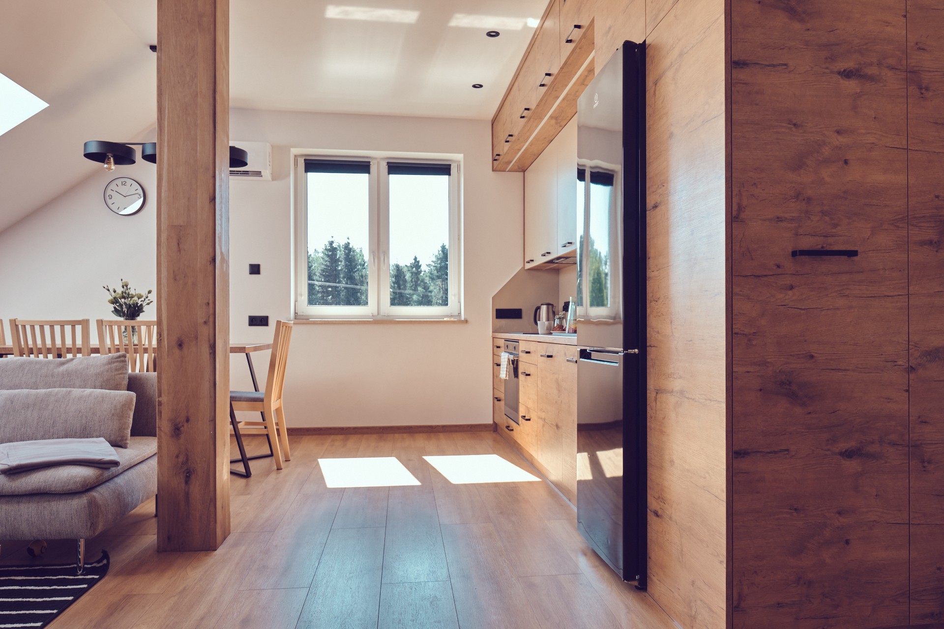 WieliczkaHome to niezależne mieszkanie na piętrze domu. Blisko centrum miasta, otoczone zielenią ogrodu, skąpane w ciszy. To świetne miejsce dla rodziny lub przyjaciół, chcących zwiedzić najpiękniejsze zabytki małopolski, odpocząć na leżaku lub szusować w sezonie na okolicznych stokach. W naszych mieszkaniach znajdziesz wszystko co potrzebne – i więcej, od kubka po pralko-suszarkę oraz pokój dedykowany pracy zdalnej z regulowanym biurkiem i wygodnym fotelem. Przybywaj do Wieliczki!